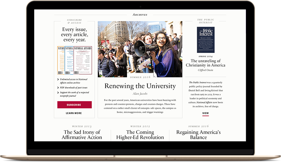 For National Affairs, readable type in a clean layout was a given intense scrutiny, considering their print edition is purely text-based.